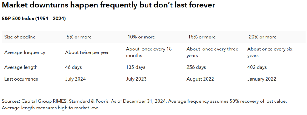 Higher inflation and interest rates would likely cause a drag on economic growth and could very well induce a recession in the US. And at current valuations, a recession could very likely lead to a re-pricing of US stocks. As I outline in my investment philosophy, I believe that all long-term investors should expect to endure a decline of 50+% in stock prices at various points in time. Do I think that will happen in this case? Not really, but anything is possible. Thankfully, large declines in stock prices only happen rarely (about 3 times in the last 50ish years), but they are a risk and Iran likely elevates the potential for large stock market moves. Smaller declines are more frequent, but as you can see in the following table, it’s not too hard to wait them out.